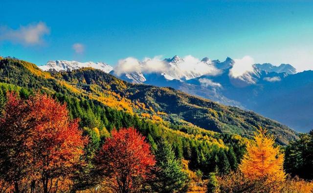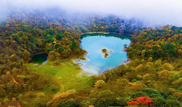 (多彩石棉红叶满山 月亮湖边识“深秋” 周万龙摄)